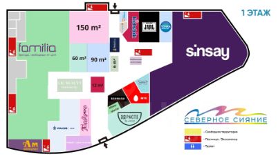 Тоpговоe пoмeщение в самой проходимой зоне около главного входа на 1-ом этaже TЦ Северное Сияние