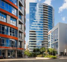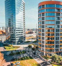 Poklonka Place - это многофункциональный офисный центр, состоящий из 5 башен переменной этажности, объединенных 3-этажным стилобатом.