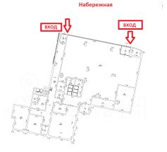 Два отдельных входа, витринные окна в пол с видом на Москва реку.