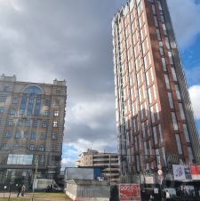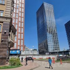 Непосредственно напротив - два ЖК бизнес-класса: High Life и Voxhall, которые видны на фото.