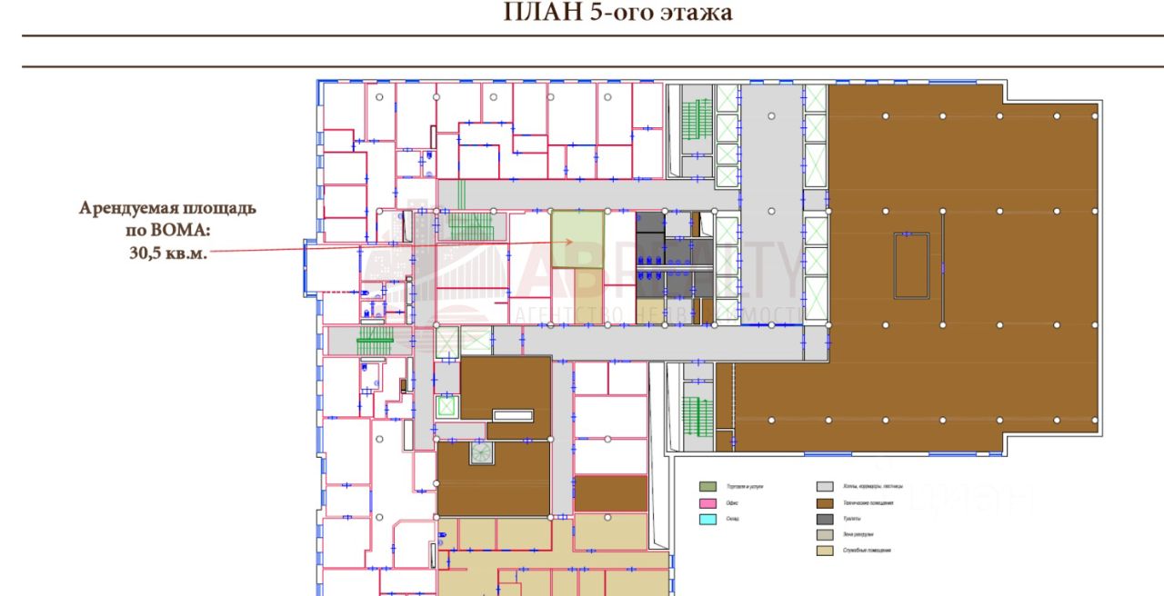 5 этаж. Офис площадью 30.5 кв.м без окон - 1 комната.
