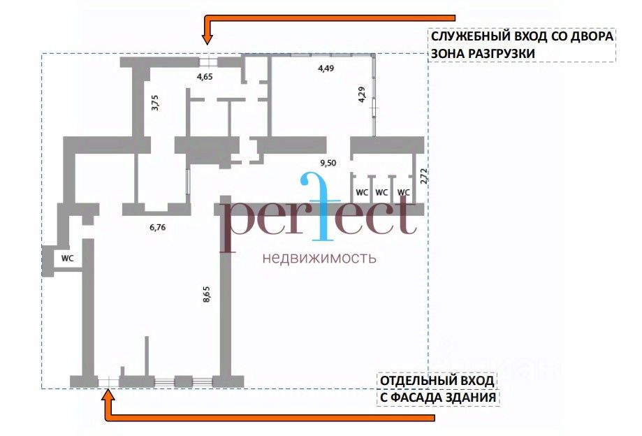 График работы 24/7. Место на фасаде для вывески. Витринные окна. Вентиляция приток/вытяжка. Служебный вход и зона разгрузки во дворе.