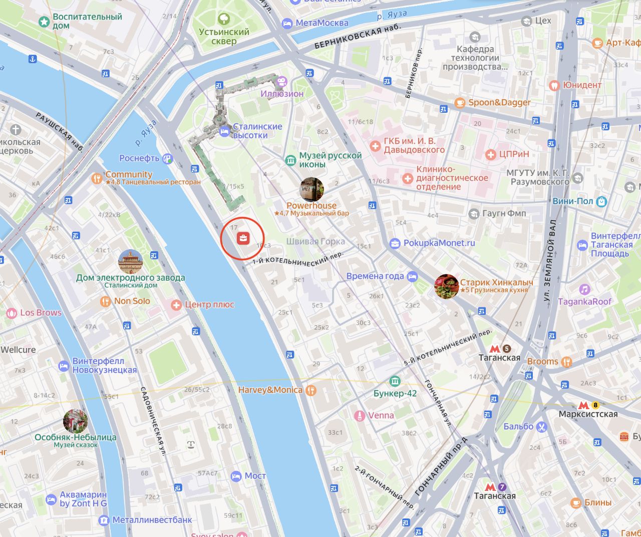 Офис расположен в одном из самых престижных и узнаваемых деловых центров Москвы — в историческом здании Российский союз промышленников и предпринимателей (РСПП) на Котельнической набережной. Это место символизирует высочайший статус его резидентов и обеспечивает безупречную репутацию. Здание находится в непосредственной близости от Кремля, набережной Москвы-реки и имеет прекрасную транспортную доступность.