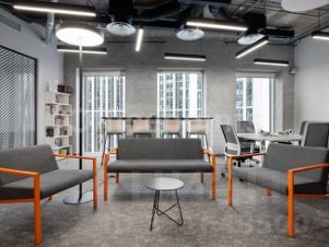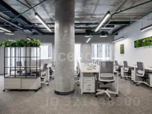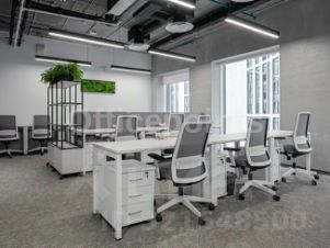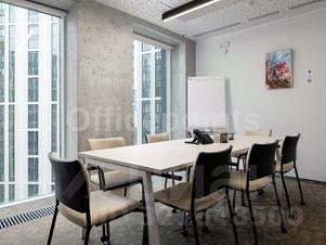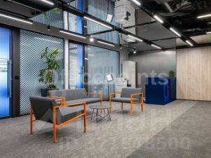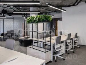 Сервисный офис представляет собой пространства премиум-класса. Оборудовано все необходимое для работы и отдыха в перерывах. Вмещает до 34 рабочих мест, оборудовано переговорными и board-room. В помещениях качественная офисная отделка с мебелью. Смешанная планировка, центральная система кондиционирования и приточно-вытяжная система вентиляции.