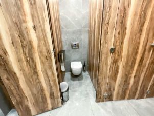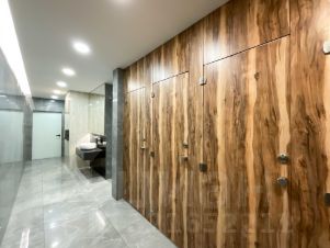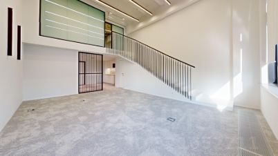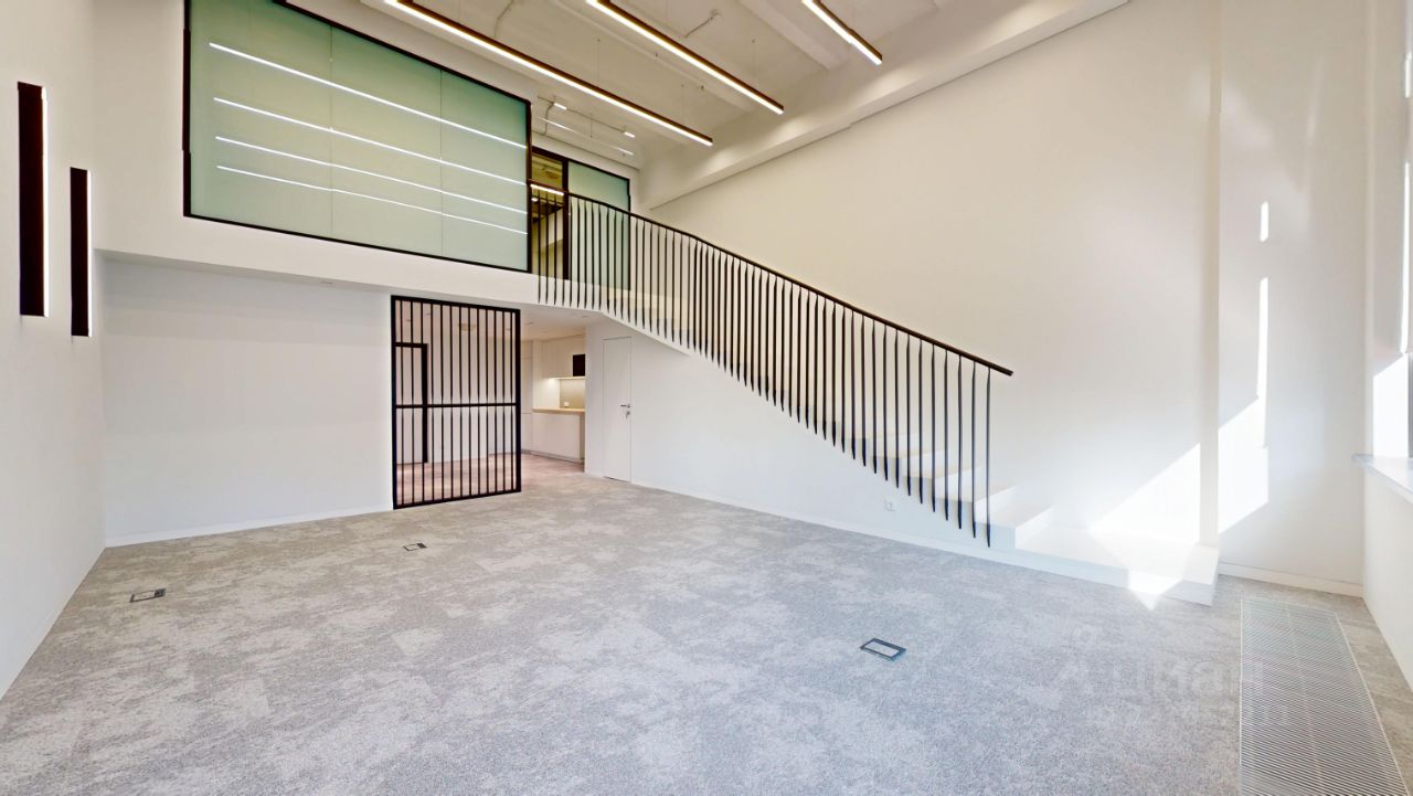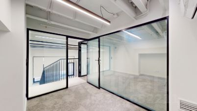 Офис двухэтажный, общая площадь 85,1 кв.м., на первом уровне расположена входная группа, гардеробная 5,4 кв.м, кухонная зона 4,2 кв.м и рабочее место open space 33,8 кв.м., на втором уровне расположен кабинет 11,1 кв.м. и переговорная 7,3 кв.м.
