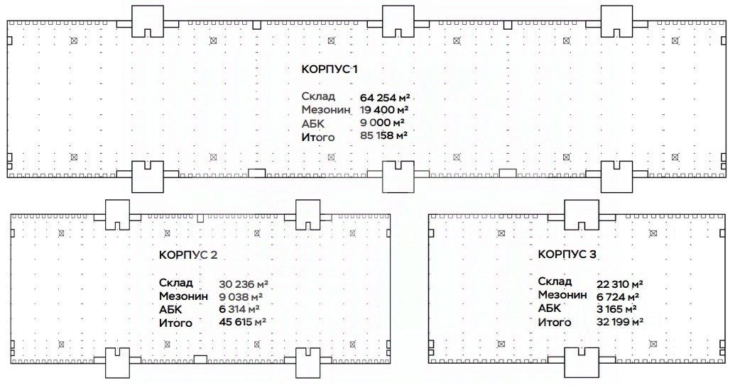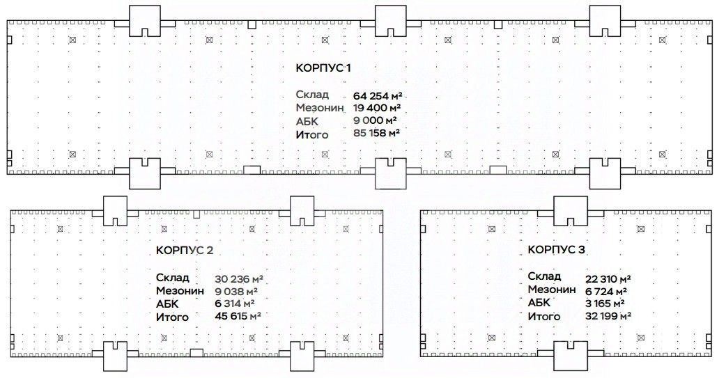 Аренда всего корпуса 1 площадью 85 158 кв. м, включая: