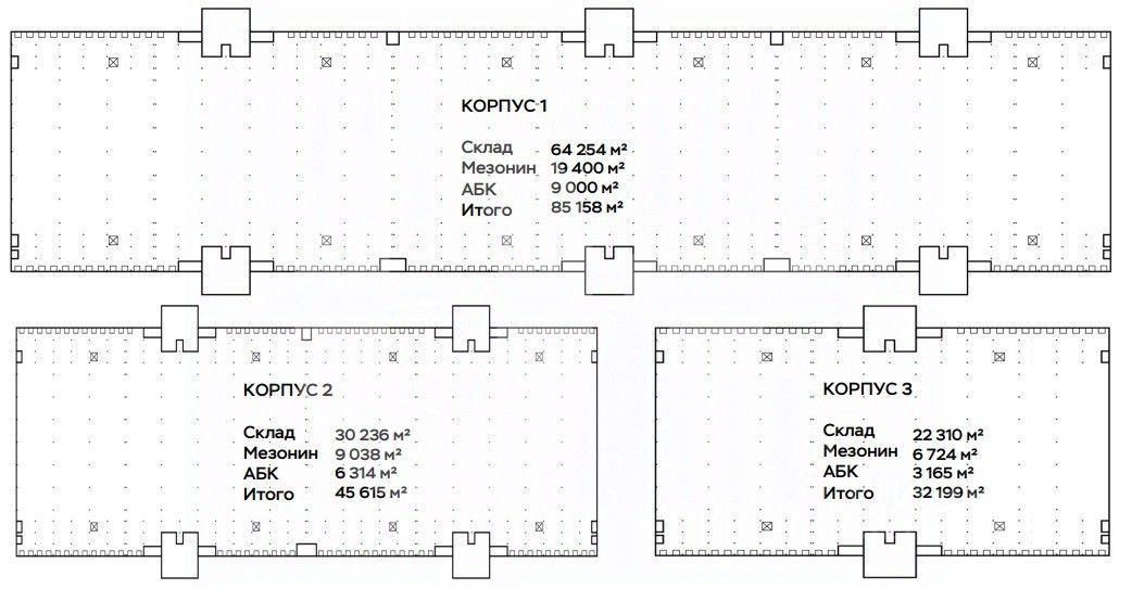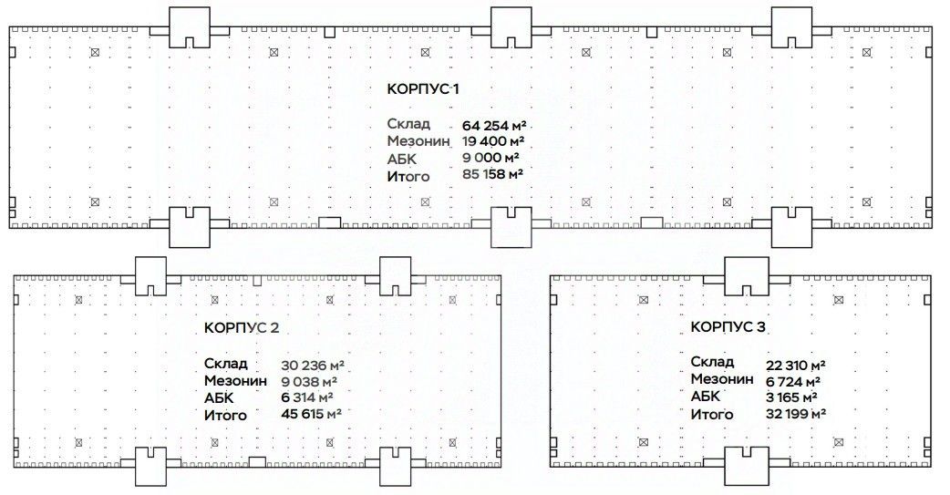 Аренда корпуса 1 и корпуса 3 площадью 117 357 кв. м, включая: