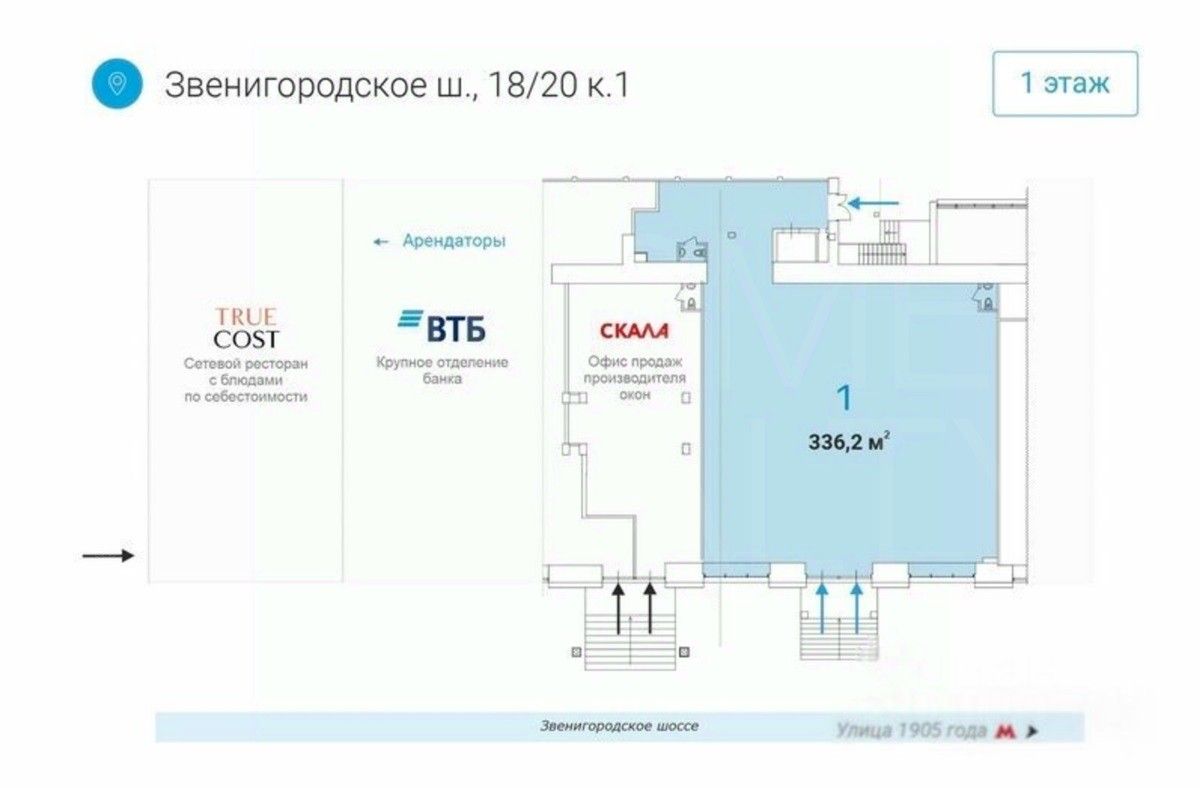 АРЕНДА ТОРГОВОЙ ПЛОЩАДИ 336.2 М В БЦ "ЗВЕНИГОРОДСКИЙ" - ПРЕМИУМ-ЛОКАЦИЯ ДЛЯ РИТЕЙЛА В ЦАО! Помещения класса B+ на первом этаже с отдельными входами и панорамными витринами. Идеально для банка, премиального магазина или медицинского центра в эпицентре деловой жизни Пресненского района! КЛЮЧЕВЫЕ ХАРАКТЕРИСТИКИ Площадь: 336.2 м на 1 этаже 7-этажного бизнес-центра