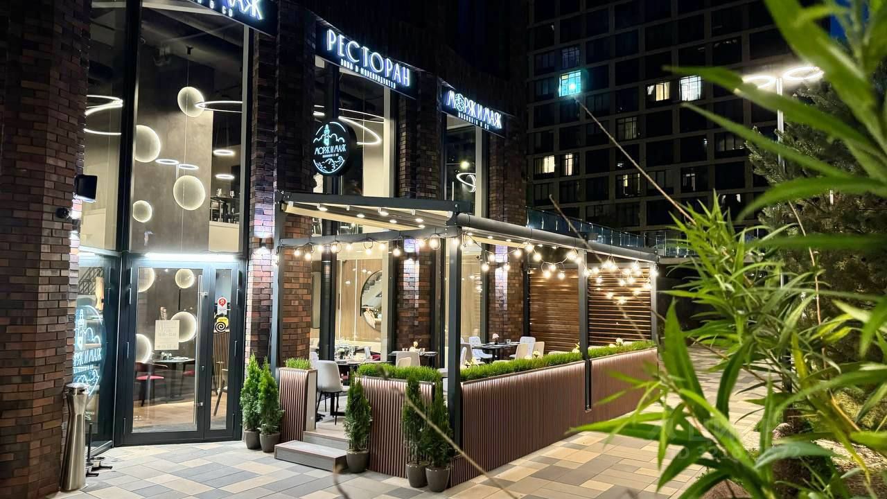 Помещение расположено на первой линии оживлённой набережной, в новом районе бизнес класса с высоким пешеходным трафиком.