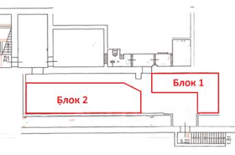Блок 2 - 40 м2 (блок правильной прямоугольной формы. В блоке сделано деление на две зоны клиентскую и рабочую/складскую, перегородки гипсокартон, в случае необходимости возможен быстрый демонтаж перегородок. Идеально подойдет под пункт выдачи товара/ ремонт электроники/ маникюр / парикмахерскую. Возможно подведение мокрой точки)