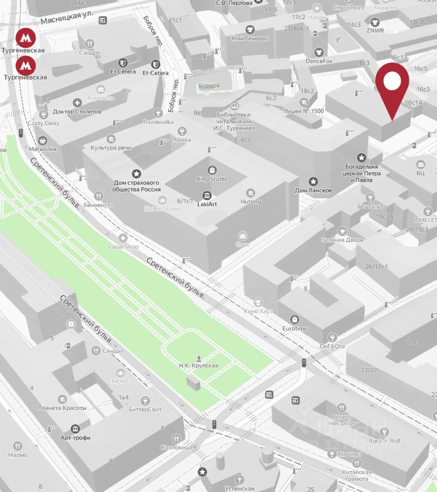 в 5 мин пешком станции метро Чистые пруды, Сретенский бульвар, Кузнецкий Мост и Тургеневская