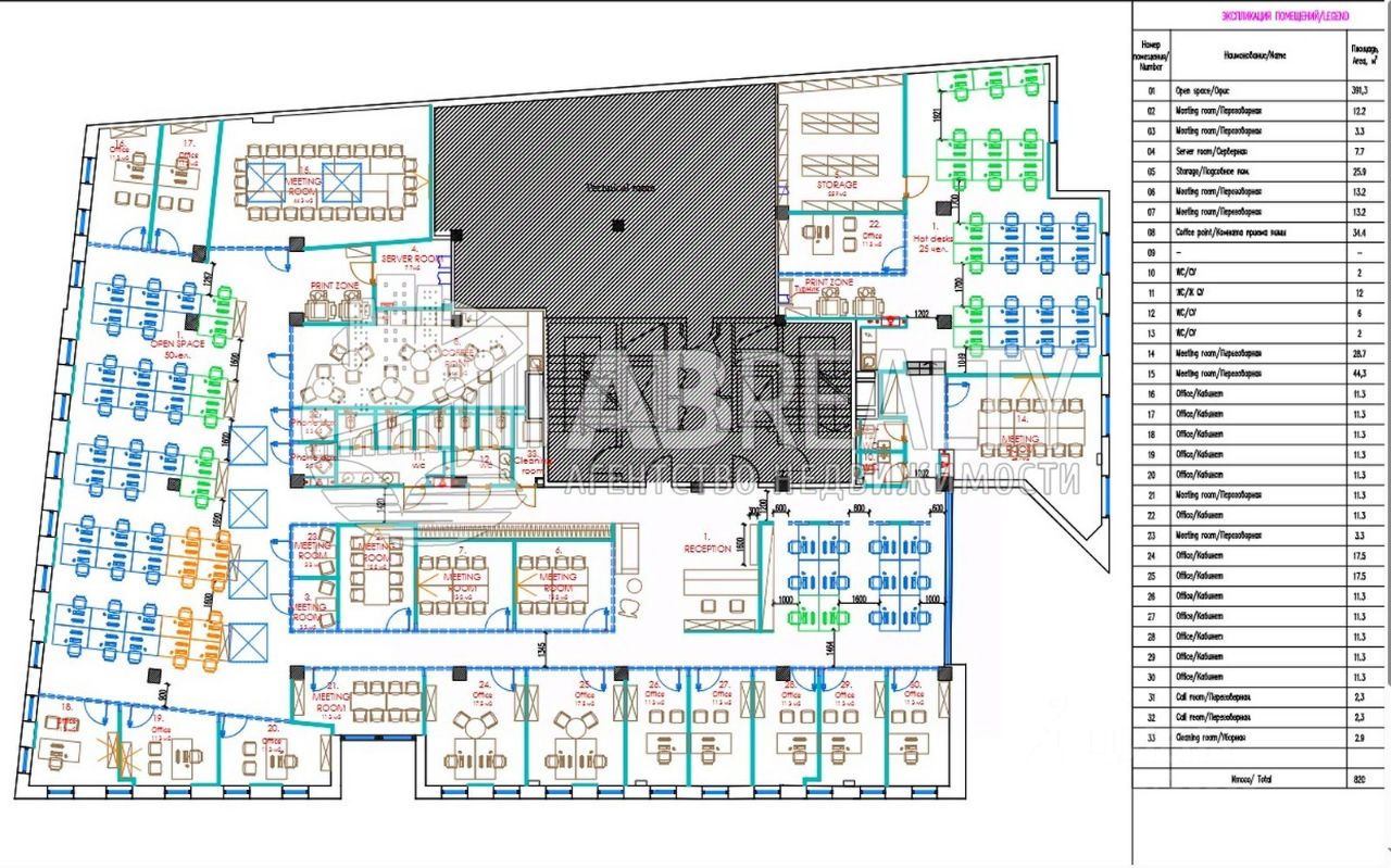 Офис с кухней, своими санузлами, ресепшн, переговорными, серверной, кабинетами и тд.