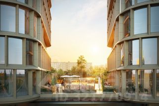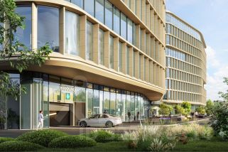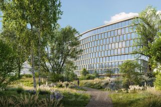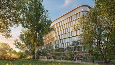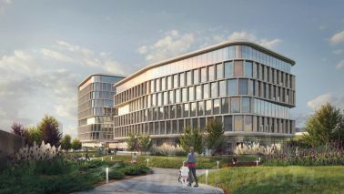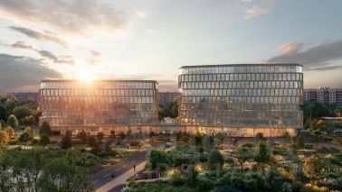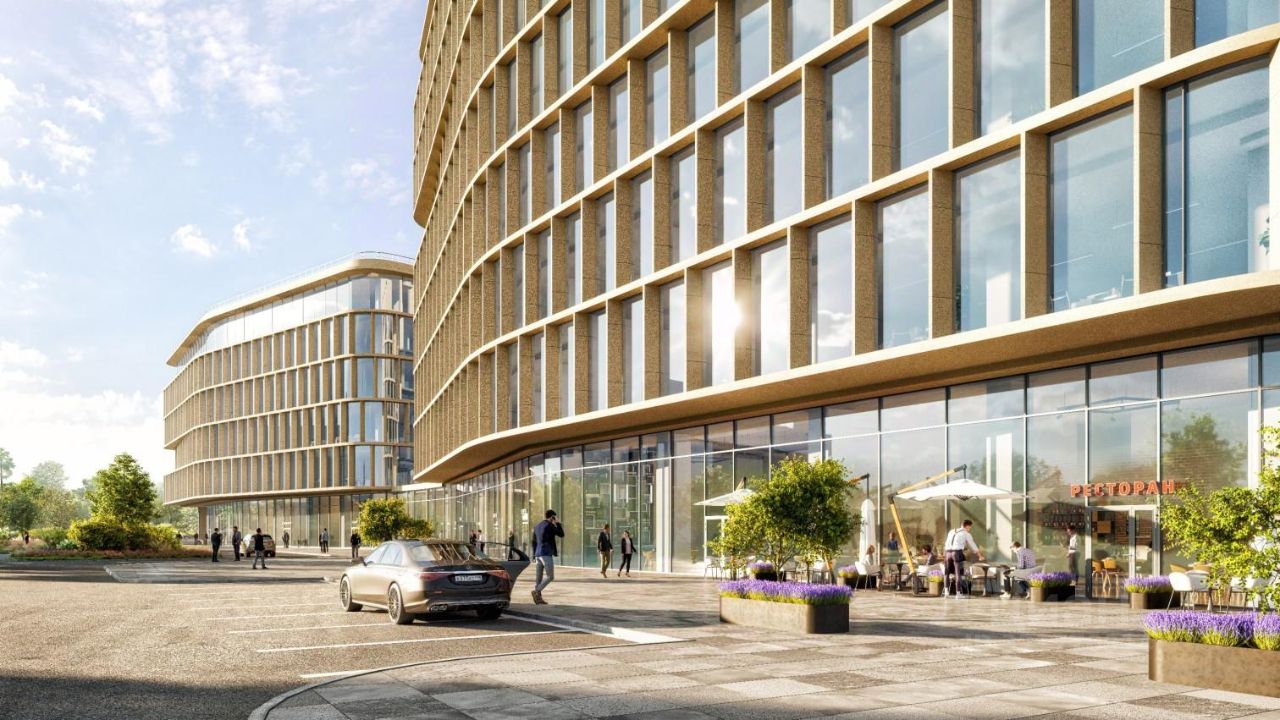 Деловой центр состоит из двух корпусов, гармонично вписанных в природный ландшафт. Его