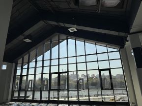 Само помещение состоит из двух панорамных блоков 298,8 и 181,6 квадратных метров с панорамной перемычкой с видом на набережную и атриум холл 14 квадратных метров. На панорамной части предусмотрены открывающиеся окна.