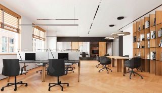 Планировка смешанная. Просторные рабочие зоны и приватные кабинеты, которые создают комфорт и уют для эффективной работы .