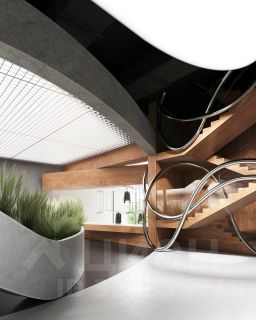Общая площадь 79.6м2. Высокие потолки. Панорамное остекление. Открытая планировка. Все этажи соединены между собой круглым атриумом с мансардным окном. Помещение оснащено центральной системой кондиционирования и вентиляцией.