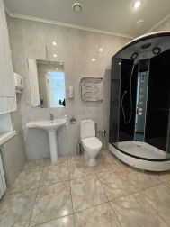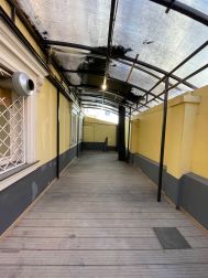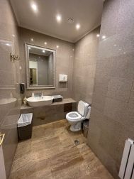 В здании выполнен дизайнерский евроремонт с использованием высококачественных отделочных материалов, смешанная планировка, есть каминный зал, зона для руководства.