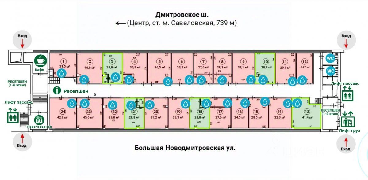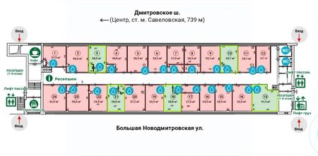 БИЗНЕС-ЦЕНТР И ЛОКАЦИЯ. Бизнес-центр расположен между станциями метро Савеловская и Дмитровская (7 минут пешком). Удобные заезды и выезды для автомобилистов на ТТК или Дмитровское шоссе. Рядом Савеловский вокзал, аэроэкспресс в Шереметьево, МЦД (D1). Развитый деловой район. В пешей доступности арт-пространства, магазины, парки, рестораны. Входы в БЦ со стороны Бутырской и Большой Новодмитровской улиц. Ресепшн. Пассажирские и грузовые лифты. Возможна парковка на внутренней территории.