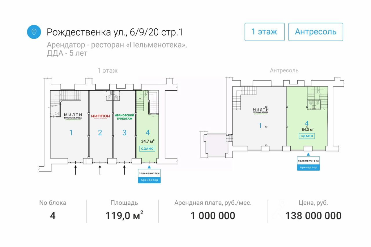 В аренду предлагается готовый арендный бизнес площадью 119м² по адресу: Москва, ул Рождественкая д.6/9/20 стр.1