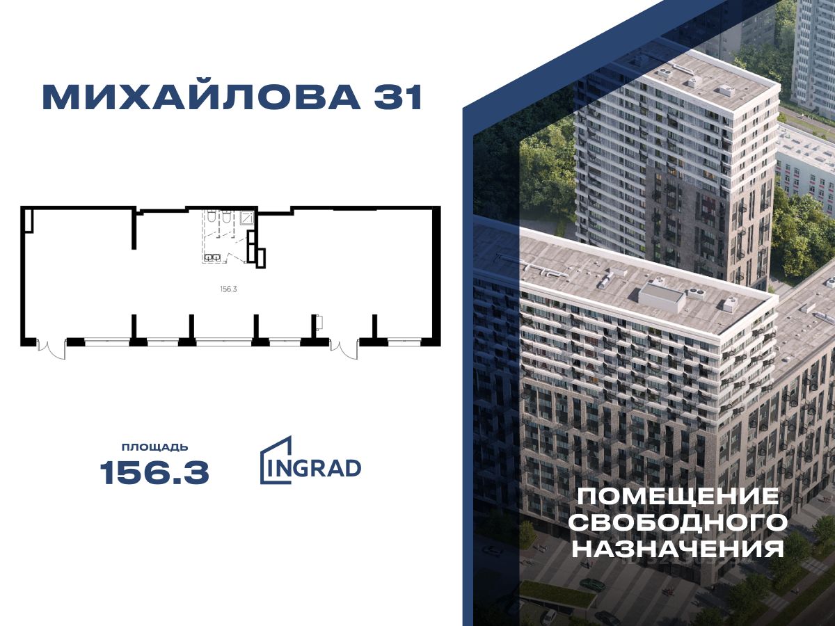 Сдается в долгосрочную аренду помещение на Михайлова, 31 площадью 156,3 кв.м. В помещении выполнена полная отделка, готово к въезду. Высота потолка 4,4 м, 2 полноценных входа с открытой территории, панорамные витрины.
