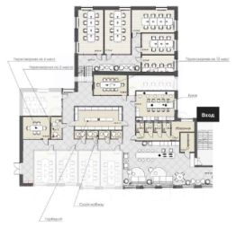 В помещении стандартная отделка, смешанная планировка. 68 рабочих места Центральная система кондиционирования и приточно-вытяжная система вентиляции. В наличии наземная парковка (15 000 руб. в месяц за м/место).