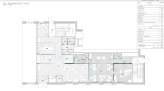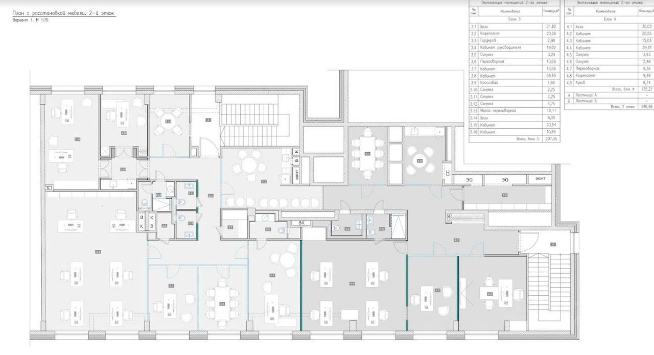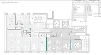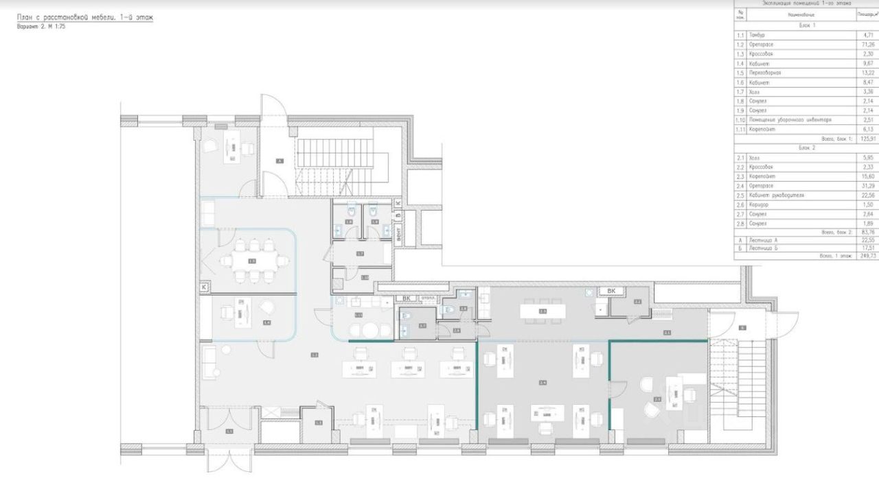 Планировка: на 100 кв.м предлагается - открытая планировка рабочего зала, кофепоинт, кабинет директора, кабинет бухгалтера, кабинет заместителя директора, переговорная на 8 человек, переговорная на 2 человек, тихая комната, санузлы.