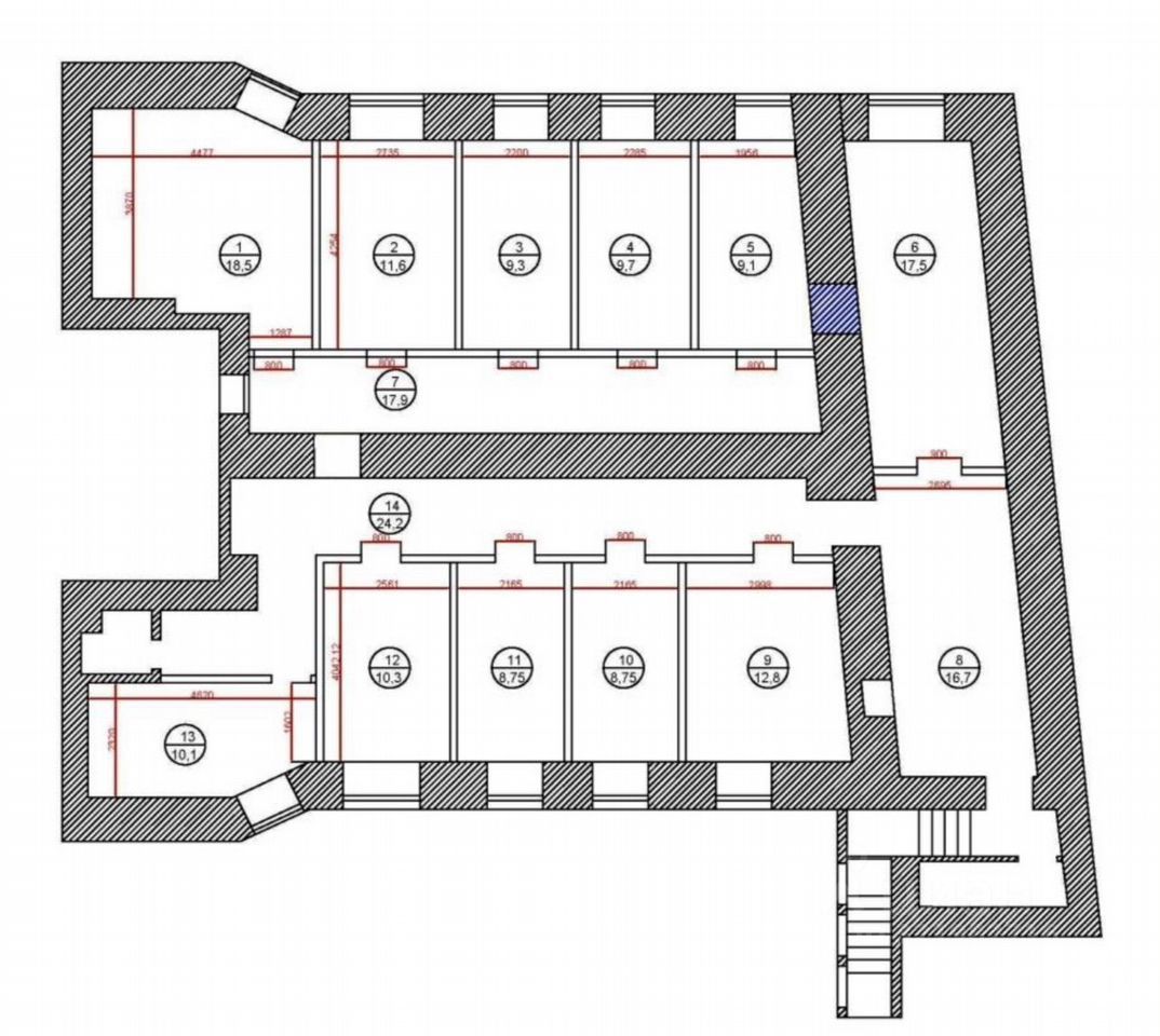 Кабинетная планировка. Сделан ремонт с новыми коммуникациями. Высокие потолки (4 м), мощность более 30 кВт.