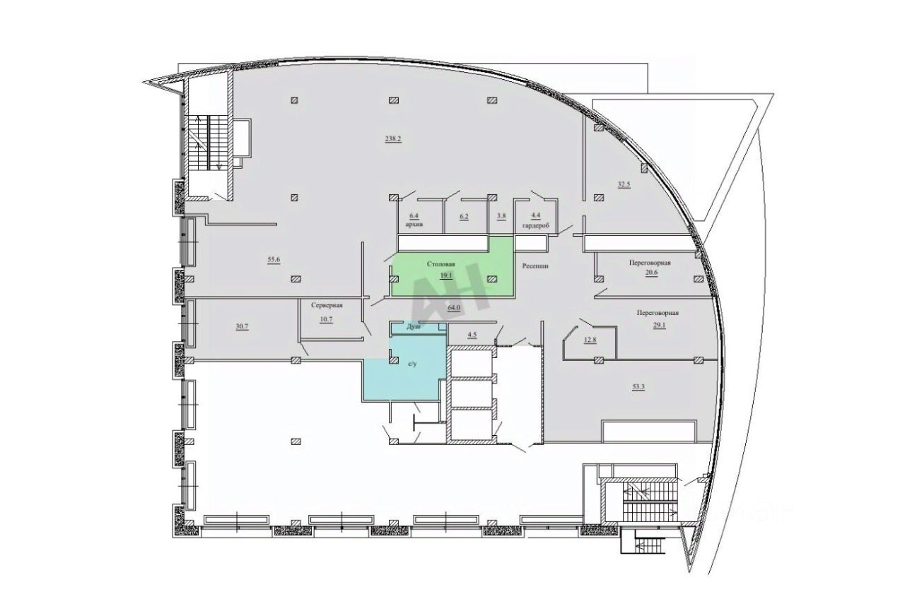 Лот 936534 Предложение от Собственника! Сдается офисное помещение площадью 618 кв.м на шестом этаже. Планировка смешанная и включает холл с ресепшен, открытое пространство, столовую для сотрудников, отдельные кабинеты, серверную комнату и помещение под архив.