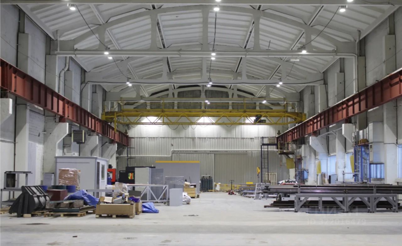 5200 м2 (Два пролета по 2600 м2 , размер 24 м х 104 м, оснащены крановым оборудоваванием : кран-балки 4 шт. по 3,2 т., 4 шт. по 5 т.), в каждом пролете ворота в ноль.