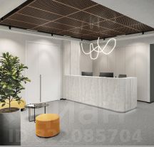 Ресепшен, кофе-поинт, переговорные, кабинет руководителя, до пяти кабинетов сотрудников, опенспэйс, серверная.