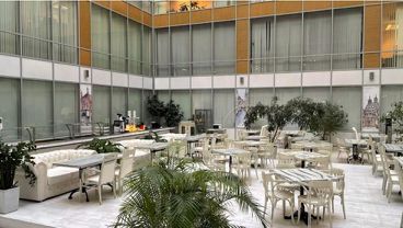 Состоит из двух корпусов, объединяемых в общее пространство атриумом-холлом.