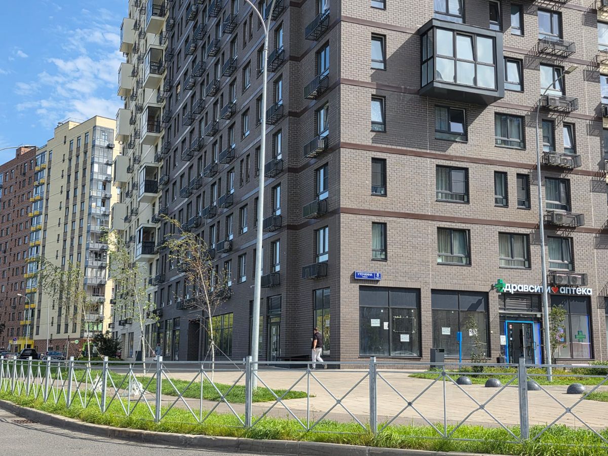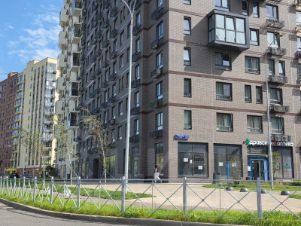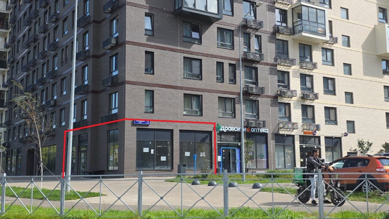 Угловое помещение расположено в самом центре района с постоянным потоком людей. Дома сданы в 2022 году, и большинство квартир уже заселены жильцами. В этом же здании находятся магазины Дикси Go, Магнит Косметика, Здравсити и другие. Вводится в эксплуатацию вторая очередь жилого комплекса, а по проекту напротив помещения будет автобусная остановка. Еще больше покупателей. Место очень привлекательное для бизнеса благодаря наличию окон с двух сторон и проходу от остановки к жилым кварталам. Мощность — 20 кВт, есть возможность деления.