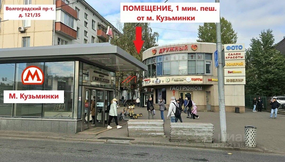Аренда торгового помещения площадью 45 м2 по адресу Волгоградский пр-т, 121/35 (1 минута пешком от метро "Кузьминки"). 1 линия домов.