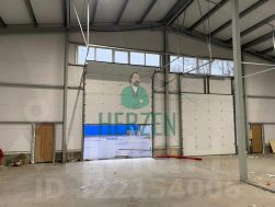 Четверо подъемных ворот (по двое с каждого торца) на нулевом уровне
