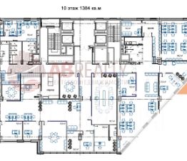 Смешанная планировка: open-space, ресепшн, кабинеты руководителей с зоной отдыха, переговорные комнаты, кабинеты, lounge пространство, серверные, переговорные booth, зоны отдыха, гардеробная-хранения, кухня + обеденная зона и свои санузлы.