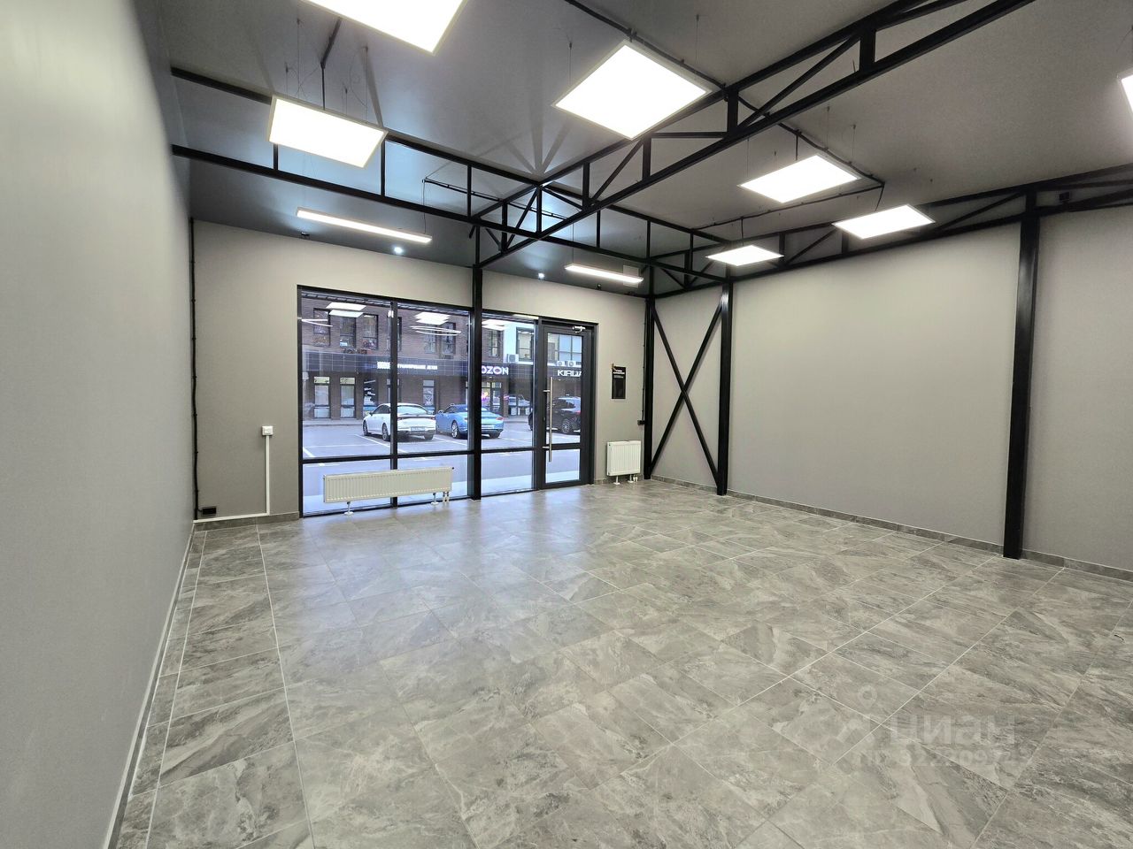 Помещение с отделкой, современный формат с витринными окнами и высоким потолком 3,35 м.