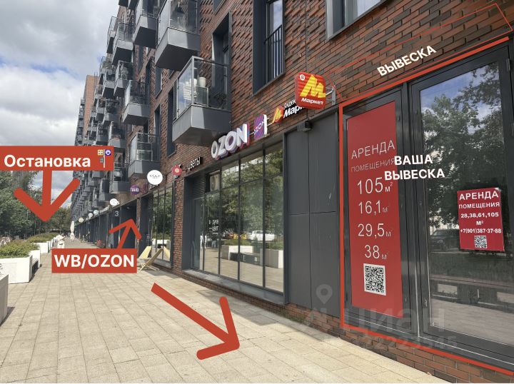 Первая линия, высокий пешеходный и автомобильный трафик, отличная видимость!