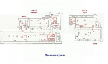 - Помещение в двух уровнях: 1 этаж 192,8 м² и подвал 339,7 м².
