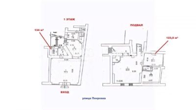 - Помещение двухуровневое: 134 м² на первом этаже и 123,5 м² в подвале.