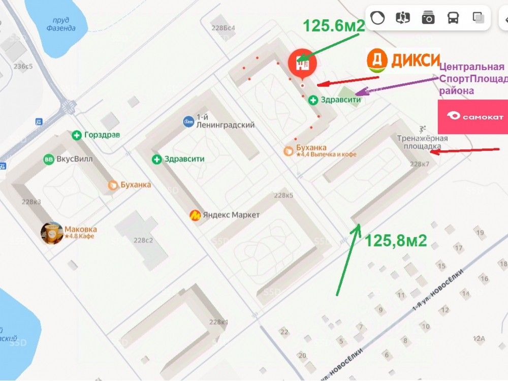 Предлагается в аренду торговое помещение в монолитном 15и этажном жилом доме, расположенном по адресу: Москва, Ленинградское шоссе, 228к7 (ЖК "1-й Ленинградский", корпус 4) Район Молжаниново относится к Северному округу столицы и расположен вдоль Ленинградского шоссе.