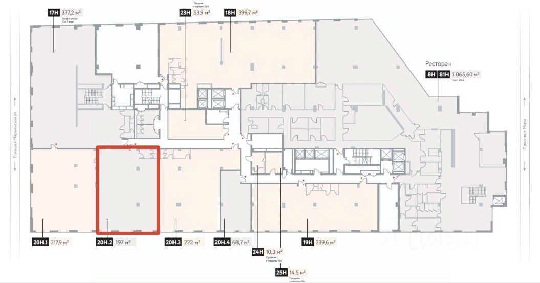 В аренду от собственника предлагается офисное помещение в МФК HILL8 площадью 197м² по адресу: Москва, пр-кт Мира, д 95. Без комиссии!