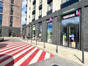 - помещение на первой линии, основной променад между двумя заездами и входами в ЖК, открытая территория без калиток и заборов, 100% полезной площади, зальная планировка, стеклянный угол с витринами угловая вывеска, вход на уровне земли