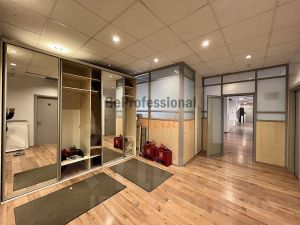 Офис, площадью 435 кв.м. располагается на 5-м этаже и состоит из просторной зоны ресепшн со встроенным гардеробом, открытым залом OPEN SPACE, 6-х изолированных кабинетов с кнами, переговорной, комнаты для приема пищи, серверной, подсобных помещений и 2-х санузлов (по 3 кабинки в каждом). Окна по всему периметру офиса, выполнен стандартный офис ремонт.