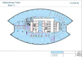 45 этаж. Вип-зоны, кабинеты для руководителей, переговорные, кухонные зоны, свои санузлы, серверные.