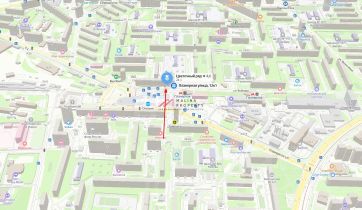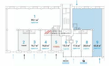 Помещение 63,8 м2, располагается на 1 этаже, открытая планировка, отдельный вход с фасада и со двора, высота потолка 3,7 м, витринные окна по фасаду. Парковка перед фасадом. Место для размещения рекламы.