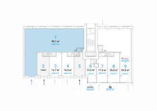 Помещение 99,1 м2, располагается на 1 этаже, открытая планировка, отдельный вход с фасада, высота потолка 3,7 м, витринные окна по фасаду. Парковка перед фасадом. Место для размещения рекламы.