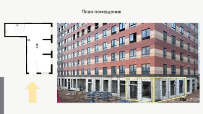 •Открытая планировка, высота потолка 3.89 м, с улицы витринное окно и вход, 3 витринных окна в торец.