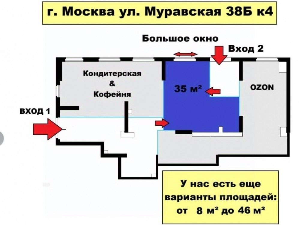 Предлагается помещение в аренду по адресу Муравская 38бк4. Общая свободная площадь 54 м2. Возможна аренда отдельных площадей 46 м2, 35 м2, и 8 м2.