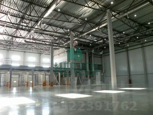 Ровный бетонный пол с антипылевым покрытием. Допустимая нагрузка на пол 8 т/м2