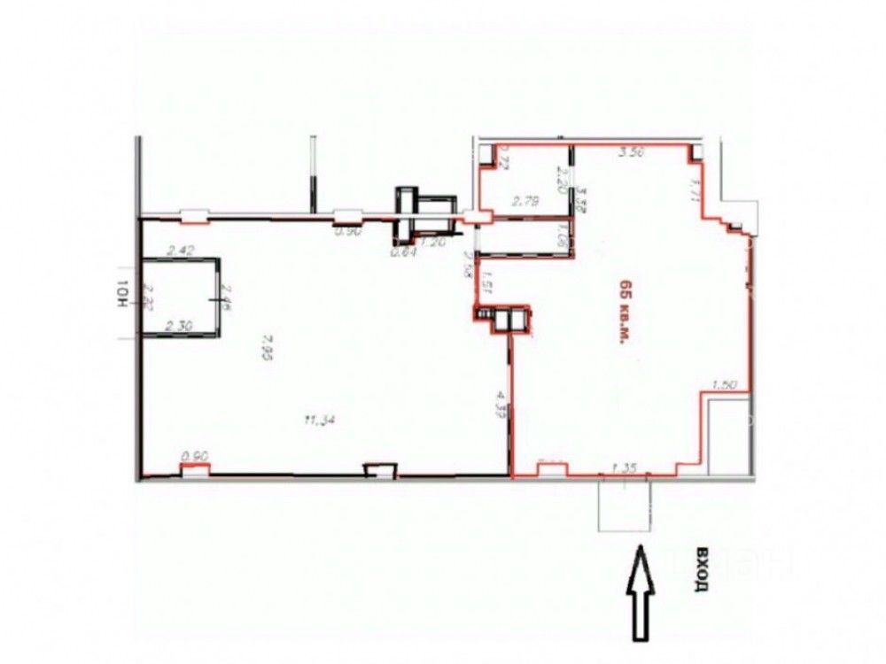 Общая площадь помещения - 65 кв.м., отдельный вход, витринное остекление, эл.мощность 20 кВт (увеличение по запросу), высота потолков 4.8 м., центральные коммуникации.